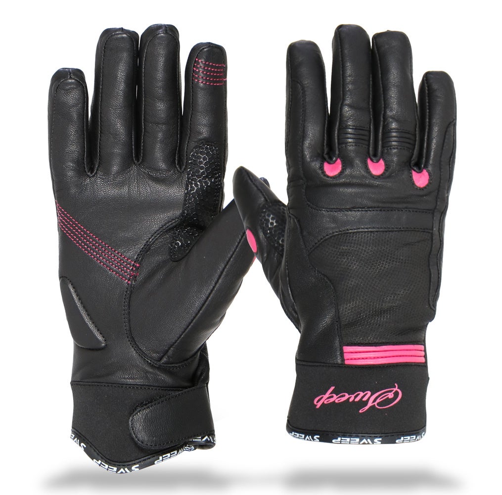 Sweep Diamond ladies leather glove black/pink